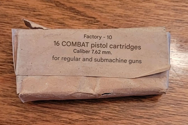 Right now you're probably asking yourself, "What about the old internet rumor about how the surplus cartridges that used to be available are 'hot', that they're made for submachine guns, and that they'll blow up your Tokarev or your CZ 52? Here we have an old package of 16 Bulgarian surplus Tokarev cartridges with the label magically translated. We see they're made for "regular and submachine guns." No worries. |