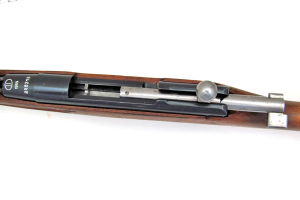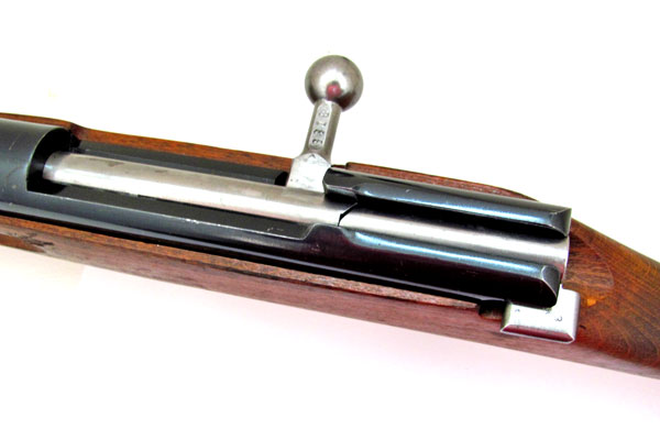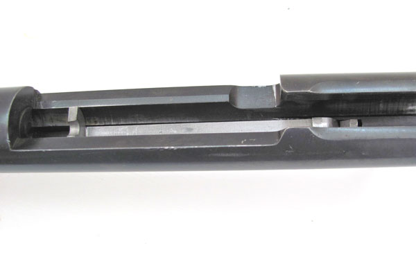 Clear the chamber by opening the bolt. The bolt will not come out with the extractor to the rear as seen here. |