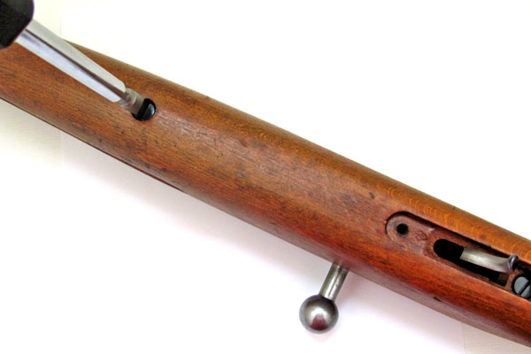Detailed Disassembly and Reassembly of the Wz-48 Training RifleThe Wz-48 in .22 LR was manufactured from 1948 to 1960 at the Łucznik Arms Factory in Radom, Poland for training use by the Czech and Polish armies. It weighs 8.5 pounds, has a 23-1/8 inch barrel, and is 44-1/4 inches long. It's built after the same pattern as the M-38 carbine, shares the same stock, routed to fit the .22 action, and has the high-quality fit and finish characteristic of Polish manufacture. This example was built in 1955. |