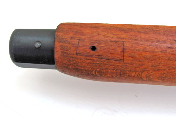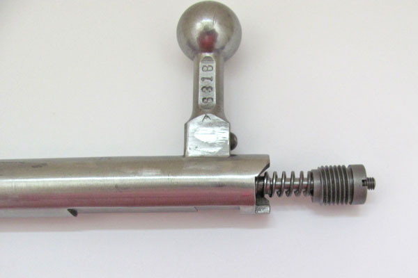 I fixed the firing pin by lightly hammering out the peened surface there at the rear (right) end of the cutout with a light hammer until the firing pin slipped easily through the hole in the front of the bolt. No filing was needed. |