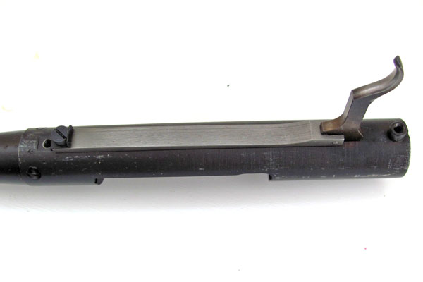The extractor can be removed by pulling the trigger to allow the tab on the rear of the extractor to pass through the slot in the receiver. Slide the extractor all the way to the rear, turn the rifle upside down, pull the trigger, and shake it all around. The extractor will fall out. |