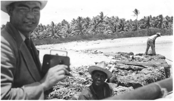 Upon arriving at an uninhabited Island about 27 miles from Hikueru and about six hours out of Hikueru, the darn Chinamen decided they wanted some fish and birds. They sent the crew ashore to get them; I went too, glad to get the exercise.