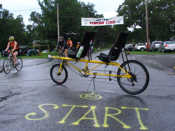 Here's our bike at the starting line (the banner was hung backwards this year).