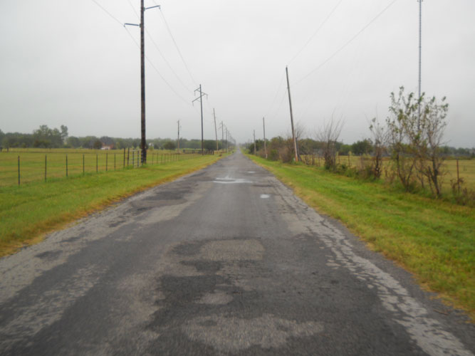 Soon we're out in the country on a misty Mays County road headed for Hudson Lake.